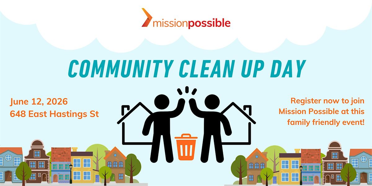 You’re invited to Mission Possible’s Community Clean Up Day on June 12, 2026! Come visit Mission Possible’s office, meet our team and associates, and go on a clean up route in our neighbourhood!