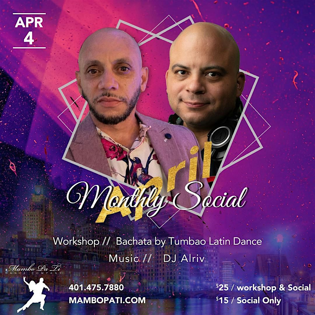 Join us for the MPT Monthly Social: April Edition on Saturday, April 4th from 7PM–11PM! Kick off the night with a special Bachata Workshop by Tumbao Latin Dance, then dance the rest of the evening away with great music by DJ Alriv.