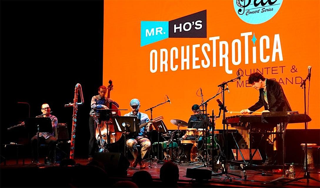 In the same way a chef de cuisine runs a kitchen, percussionist Brian O’Neill leads a team of five musical creators who deftly collaborate on instruments foreign and domestic to form modernist delicacies for hungry, curious listeners. From the high arts of jazz and chamber music to adaptations of mid-century exotica and pop art, the quintet version of Mr. Ho’s Orchestrotica renders O’Neill’s original compositions and curious adaptions of Bach, Gershwin, Shostakovich and John Adams into cinematic, layered music for armchair travelers ready to journey off road. “Engagingly unique”—Boston Globe While the quintet eschews most of the musical forms, rhythms, and styles of the 1950s exotica sound that inspired O’Neill, it fully embraces the unique genre’s love of escapism, whether through deliberate, out-of-context use of global sounds or through jazz improvisation that doesn’t swing and deliberately imitates the rhythm of a skipping record. On the listener’s plate might be equal parts scratch and sniff, bongos with a fugue, and a cat fight at a piano recital. On the stage, the ensemble skillfully negotiates detailed compositions and arrangements of classical works while relying on listening and instinct to drive passionate improvisation. The quintet has delighted ears across the US and internationally and was awarded a $15,000 touring grant from SouthArts' JazzRoad Tours program in 2024. “If John Zorn is an exotica Picasso, O'Neill is his Georges-Braque counterpart in cubism’s transposition to music.” –AllAboutJazz
