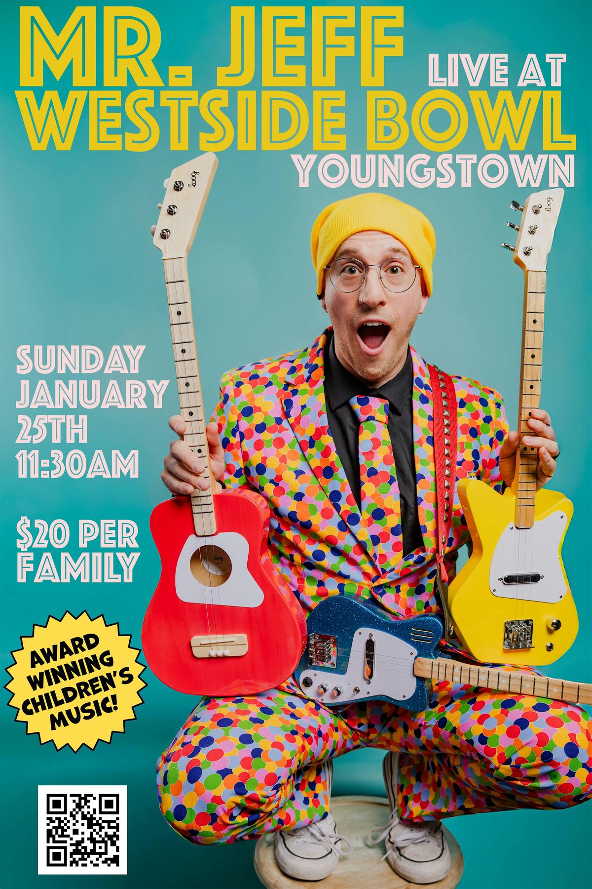 Mr. Jeff lives in Cuyahoga Falls, OH, with his super-talented and awesome wife, Jillian, and their three wonderful children. His journey is a harmonious blend of passion, creativity, and dedication, making him a shining star in children’s music and education.