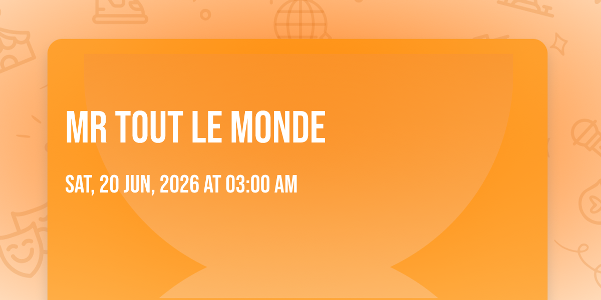 π Location: 34.0908, -118.388π Be part of history at Mr Tout Le Monde, an extraordinary gathering that will captivate your imagination! ποΈ The prestigious The Roxy Theatre - Los Angeles in Los Angeles, CA sets the stage for an unforgettable experience on June 20th, 2026 at 03:00 AM. β¨ They are bringing together the finest elements of entertainment and innovation to create moments that will take your breath away. From the moment you arrive, you'll be immersed in an atmosphere of wonder and excitement. π― This carefully planned event ensures every guest experiences something truly special. π Early booking is recommended for this must-attend event of the season!