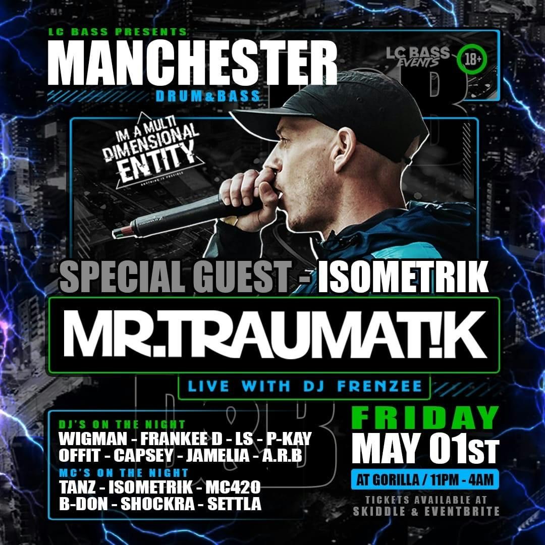LC BASS EVENTS presents the official Mr Traumatik UK tour 2026 live with DJ Frenzee. Manchester Gang this one's you!! High energy high vibrationsDisclaimer: