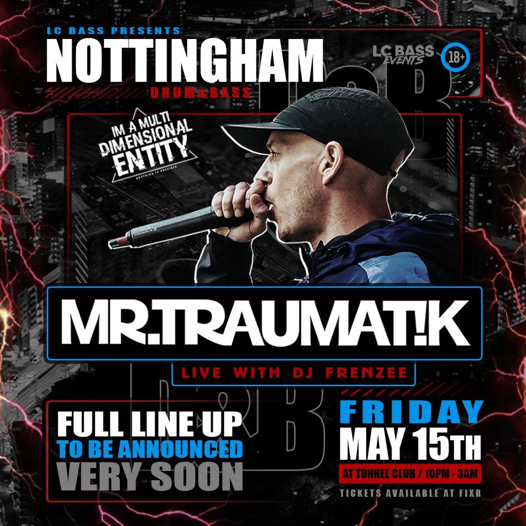 LC BASS EVENTS presents the official Mr Traumatik UK tour 2026 live with DJ Frenzee. Nottingham Gang this one's you!! High energy high vibrationsArtists
