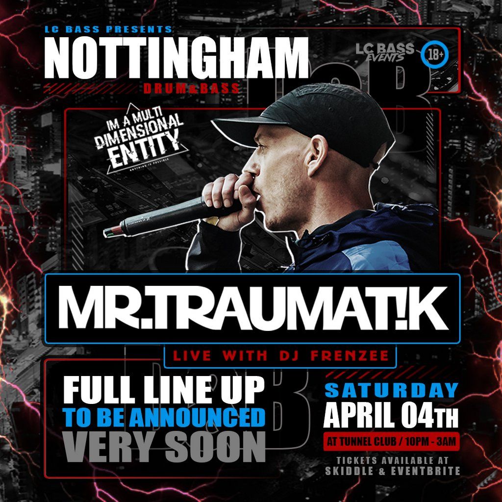 LC BASS EVENTS presents the official Mr Traumatik UK tour 2026 live with DJ Frenzee. Nottingham gang this one's you!! High energy high vibrationsArtists