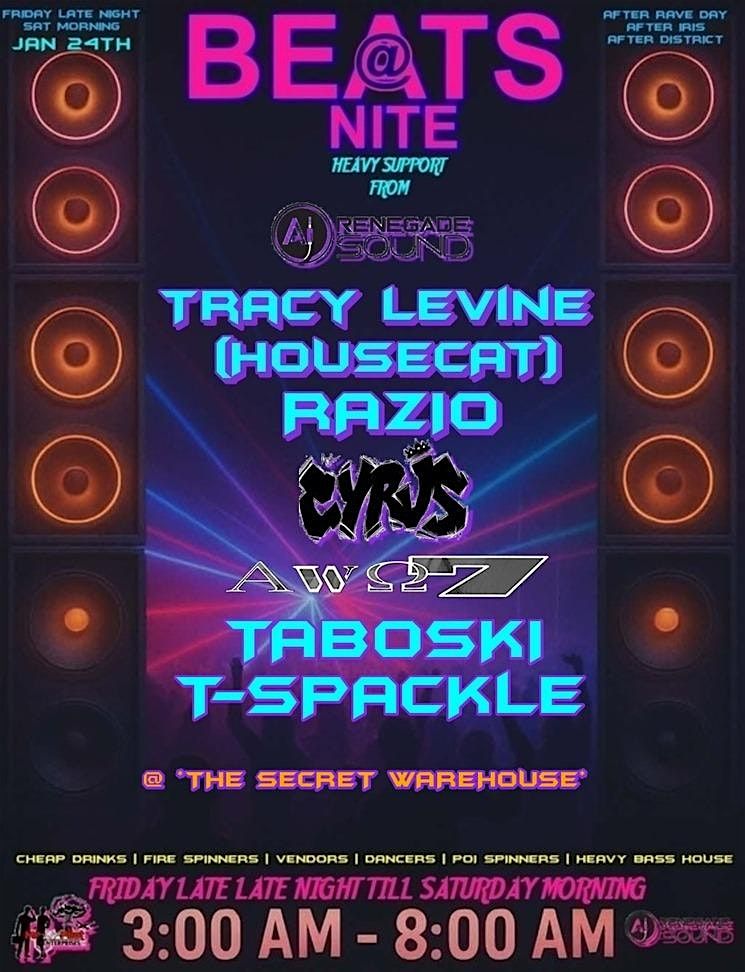 Inside: underground vendors, fire spinners cutting through the dark, immersive lighting, and bass moving through the warehouse like a machine breathing. This isn’t an after-party — it’s the main event for those who stay standing.