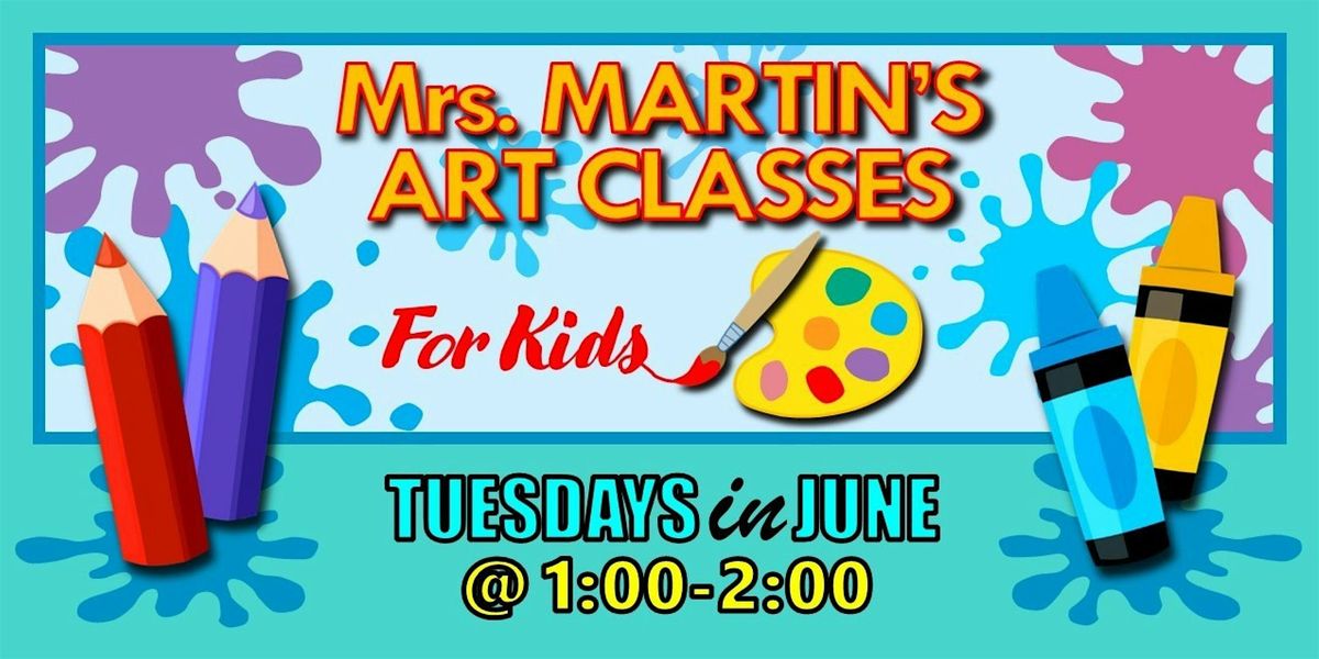 Mrs. Martin's Art Classes in JUNE ~Tuesdays @1:00-2:00