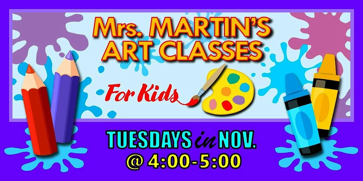 Mrs. Martin's Art Classes in NOVEMBER ~Tuesdays @4:00-5:00