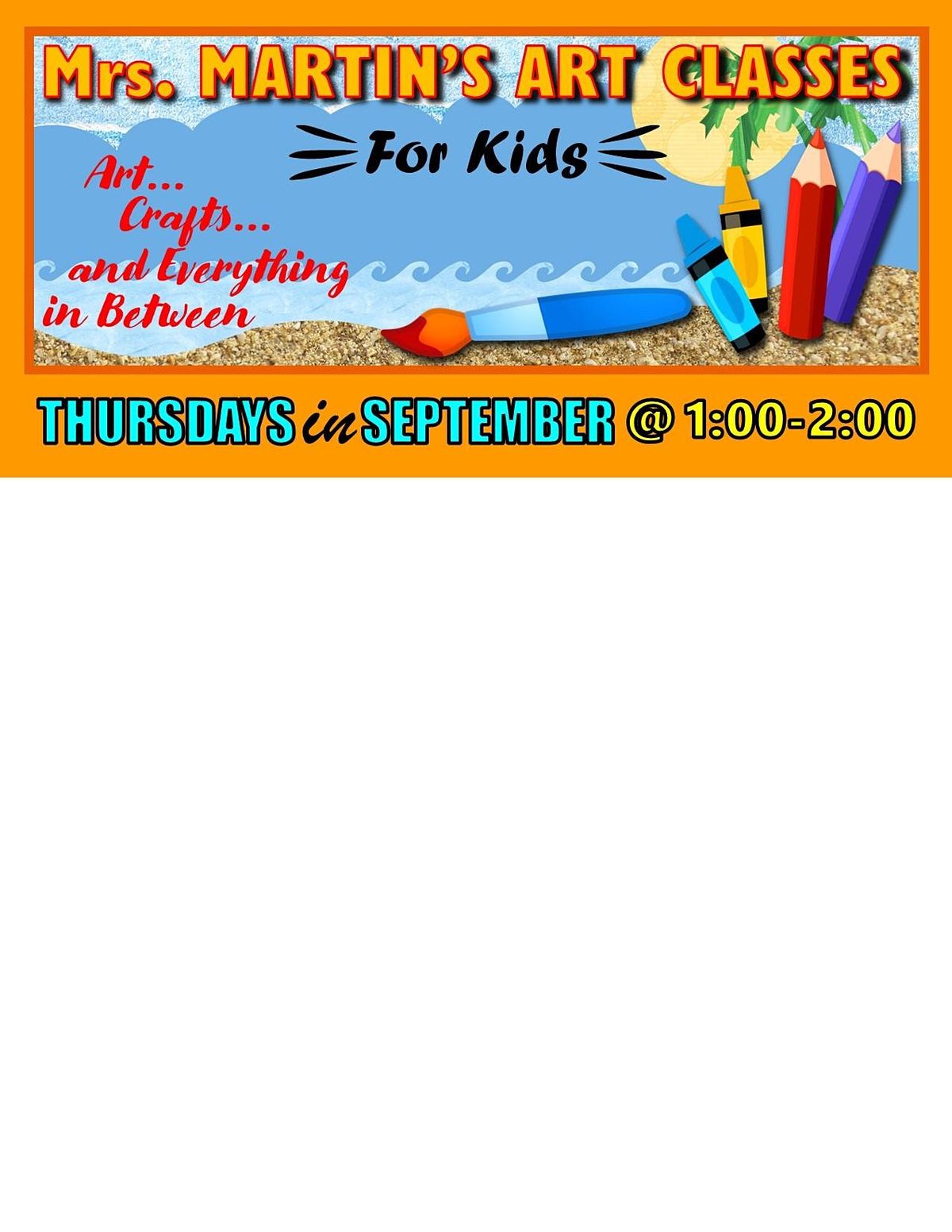 Mrs. Martin's Art Classes in SEPTEMBER~Thursdays @1:00-2:00