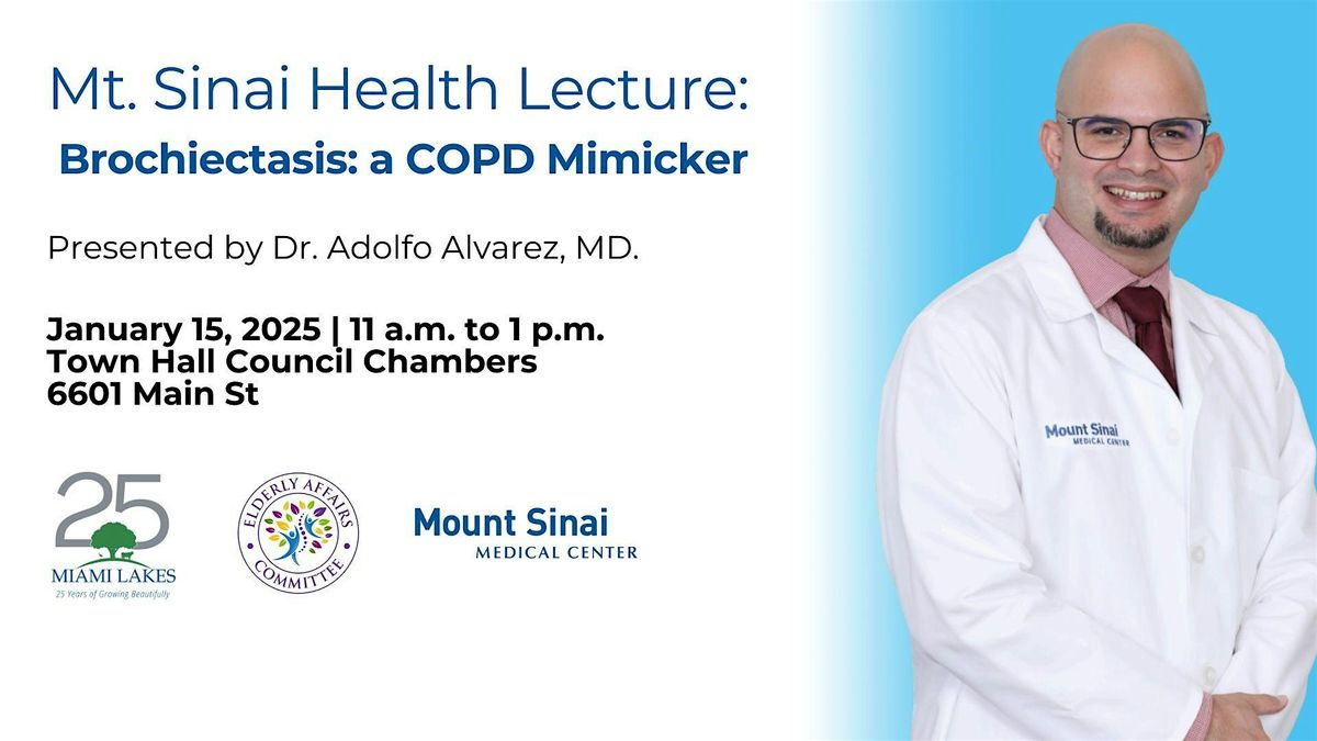 Thanks to Mount Sinai Medical Center, through the work of our Elderly Affairs Committee, we are happy to invite you to a health lecture on brochiectasis, presented by Dr. Adolfo Alvarez, MD.