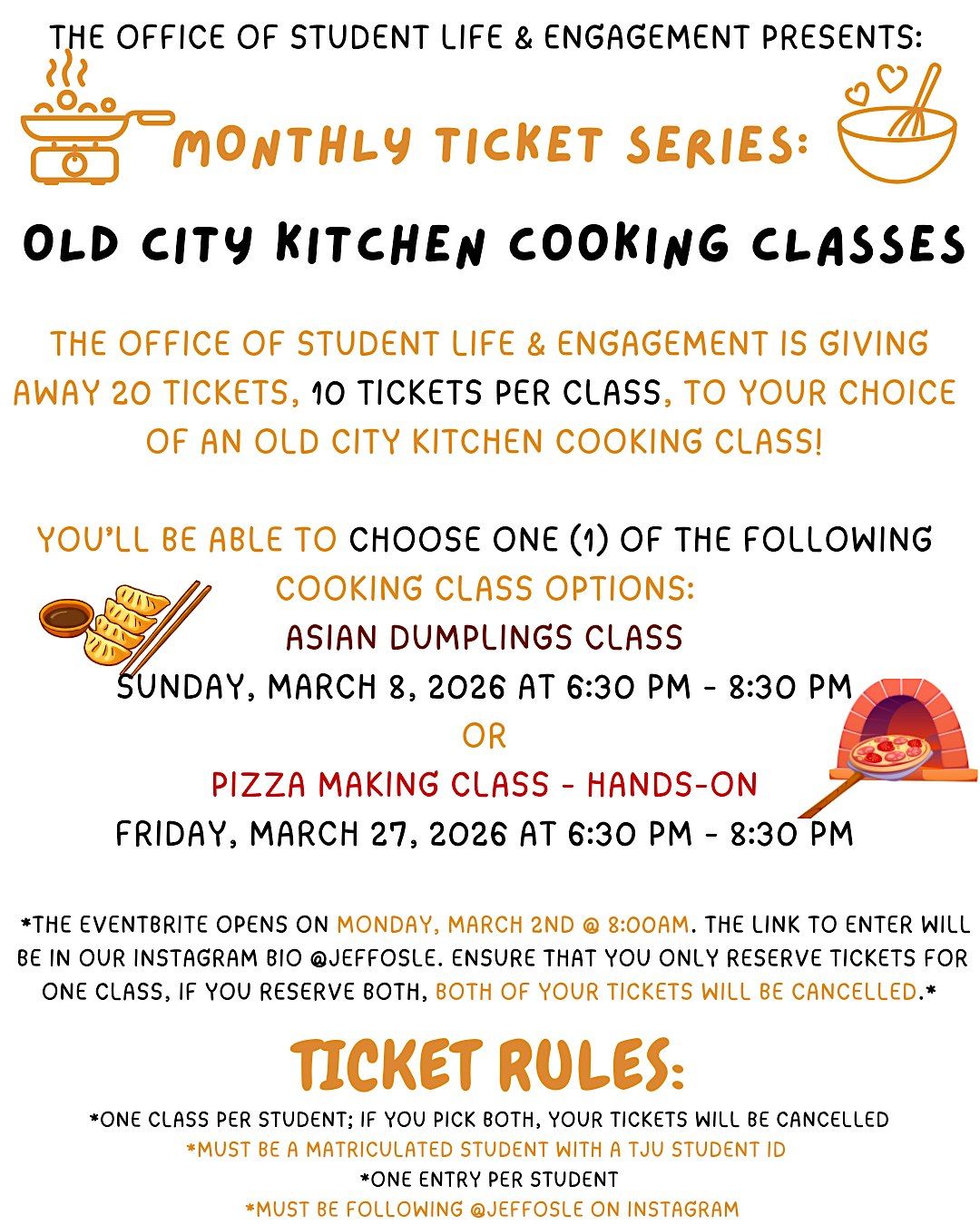 Secure your tickets for the OSLE March Ticket Series and enjoy a cooking class at Old City Kitchen.About this Event