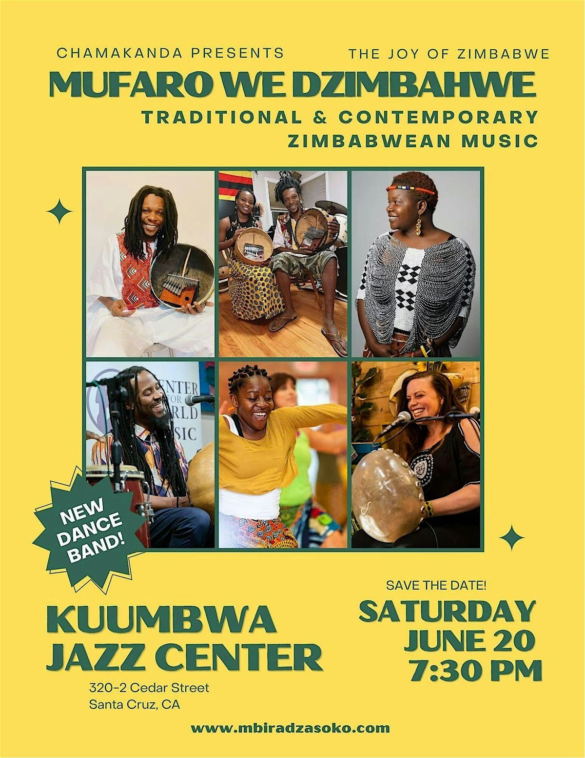 Mbira dzaSoko brings Zimbabwean mbira music to life under the passionate direction of Salani “Wamkanganise.” Rooted in tradition and rhythm, the ensemble blends timeless melodies with spirited percussion, featuring Salani Wamkanganise, Kelly Takunda Orphan, Kanukai Chigamba, Michell Marufu with special guests, Kudzie Jambwa (mbira, marimba & percussion) & Rujeko Dumbutshena (percussion and dance).