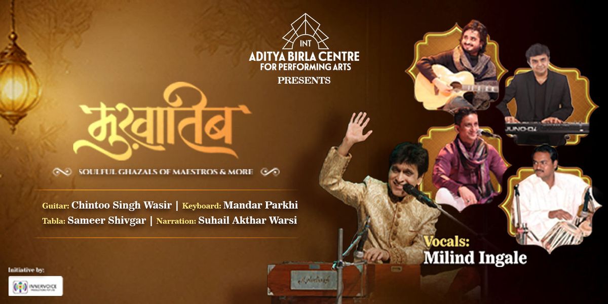 The INT Aditya Birla Centre for Performing Arts presents Mukhatib, a soulful Ghazal Mehfil by Milind. This special evening promises a rare and memorable musical experience for ghazal lovers. Blending tradition with emotion, Milind presents beautiful compositions of his mentors along with timeless ghazals made popular by legendary artists such as Ghulam Ali, Mehdi Hassan, Jagjit Singh and Pankaj Udhas.