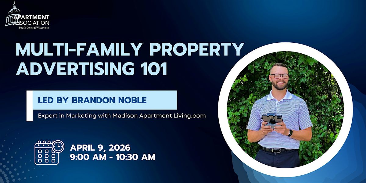 Learn the fundamentals of effective multi-family property advertising in this practical, beginner-friendly seminar. Brandon Noble, a marketing expert with Madison Apartment Living.com, will break down proven strategies to attract the right renters, optimize your online presence, and make your marketing dollars work harder.