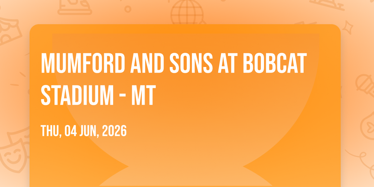 β¨ Embark on an extraordinary journey at Mumford and Sons at Bobcat Stadium - MT, where every moment promises to be unforgettable! π Imagine of transforming Bobcat Stadium - MT in the heart of Bozeman, MT into a realm of endless possibilities. π Join us on June 4th, 2026 at 08:00 PM for an experience that will challenge your imagination and exceed your expectations. π― This carefully curated event combines the finest elements of entertainment, innovation, and community spirit. Whether you're an adventure seeker, culture enthusiast, or someone looking for unique experiences, this event offers something special for everyone. π Don't miss this chance to be part of something extraordinary!