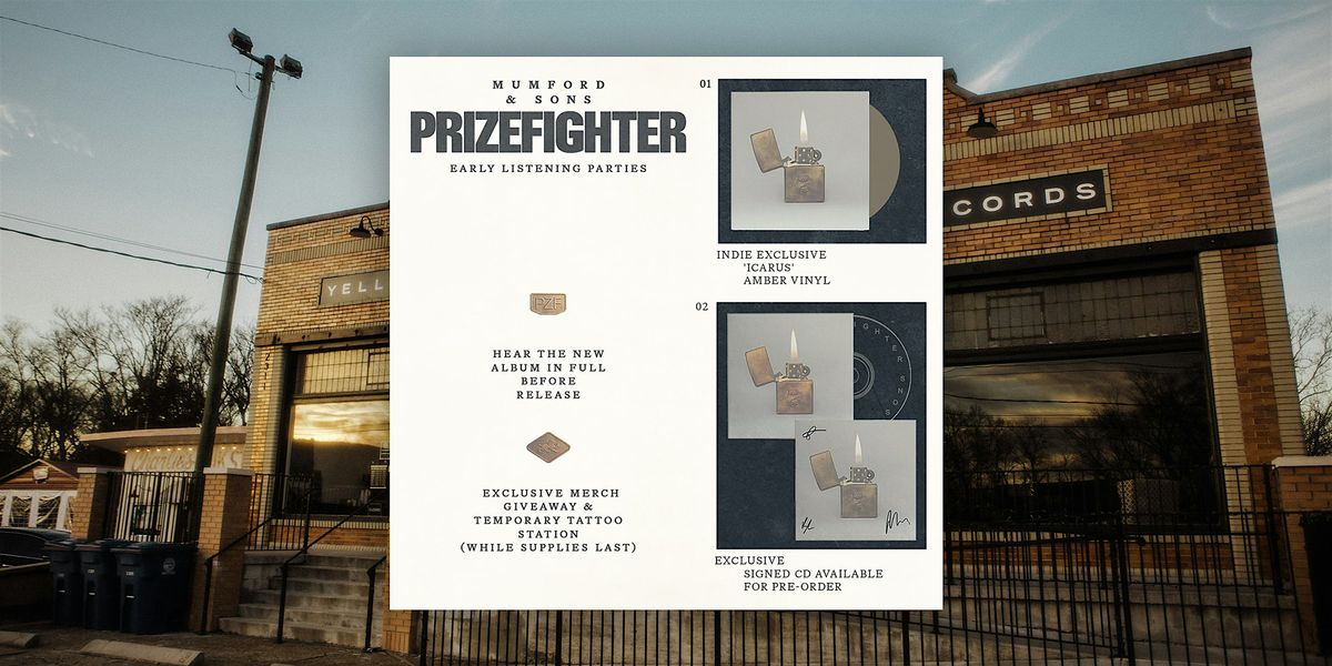 Join us Wednesday, 2/11, at 6:00pm EST to listen to Mumford & Sons' new record, Prizefighter, before the official release! We'll have limited edition slipmats and temporary tattoos up for grabs (while supplies last).