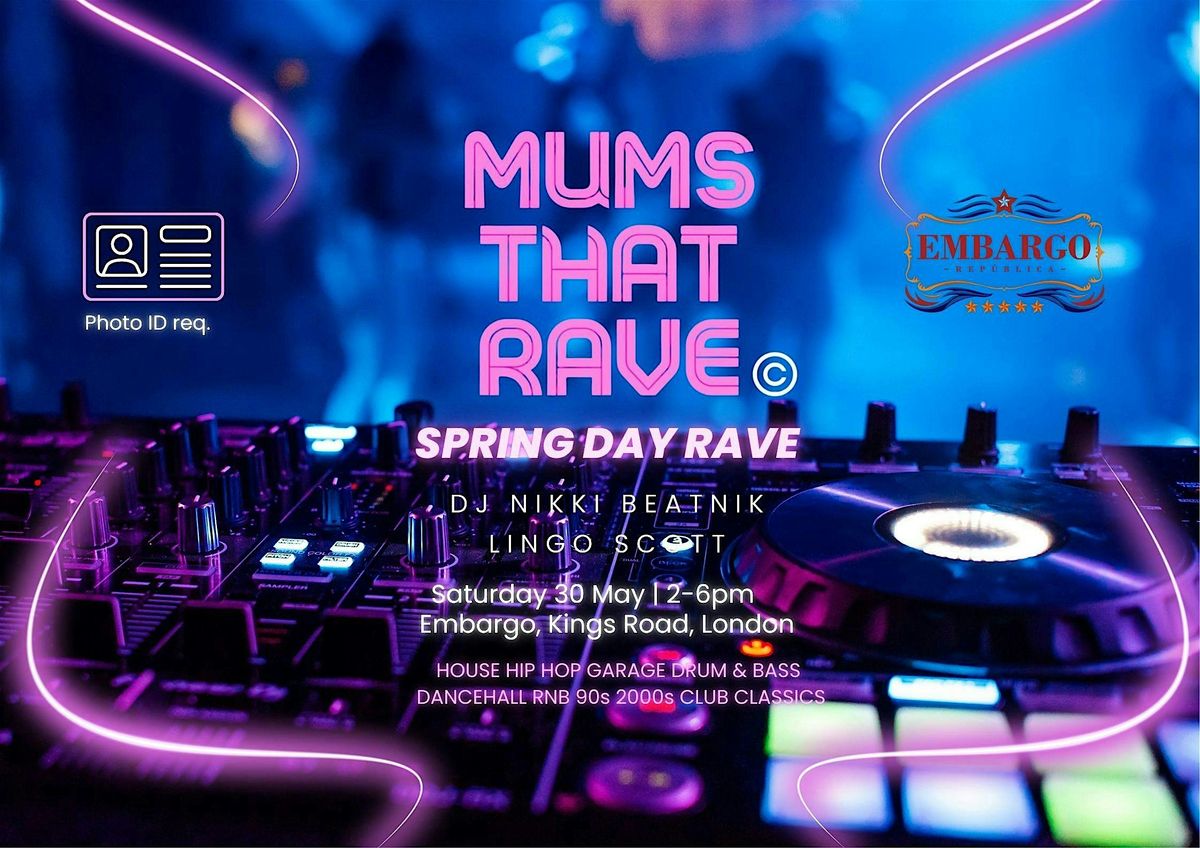 The Multi Award winning day party for women & Mamas MUMS THAT RAVE. Founded in 2019 by international DJ Producer DJ NIKKI Beatnik (Beatnik Records, Ministry of Sound, Kelis Tour DJ) claiming safe space for women in clubland. There have been 28 real life raves, live DJ streams, panel talks, 80,000 followers & 100 million views on social media. Nikki started a whole movement. You have never seen anyone rave as hard as a Mum with an afternoon to herself! Come grab life by the Disco Balls with us. Solo Ravers welcome, Aunties welcome, daughters welcome! Musoc: House, Garage, Rnb, D&B, Club Classics, Hip Hop RNB, Dancehall. Join the movement ! Follow us for daily updates @mumsthatrave on Insta, FB & Tik Tok