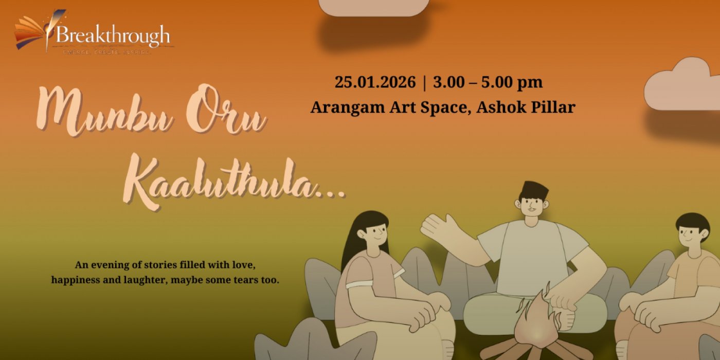 Immerse yourself in the gentle world of storytelling at Munbu Oru Kaalathula, a curated evening presented by Breakthrough the Community.