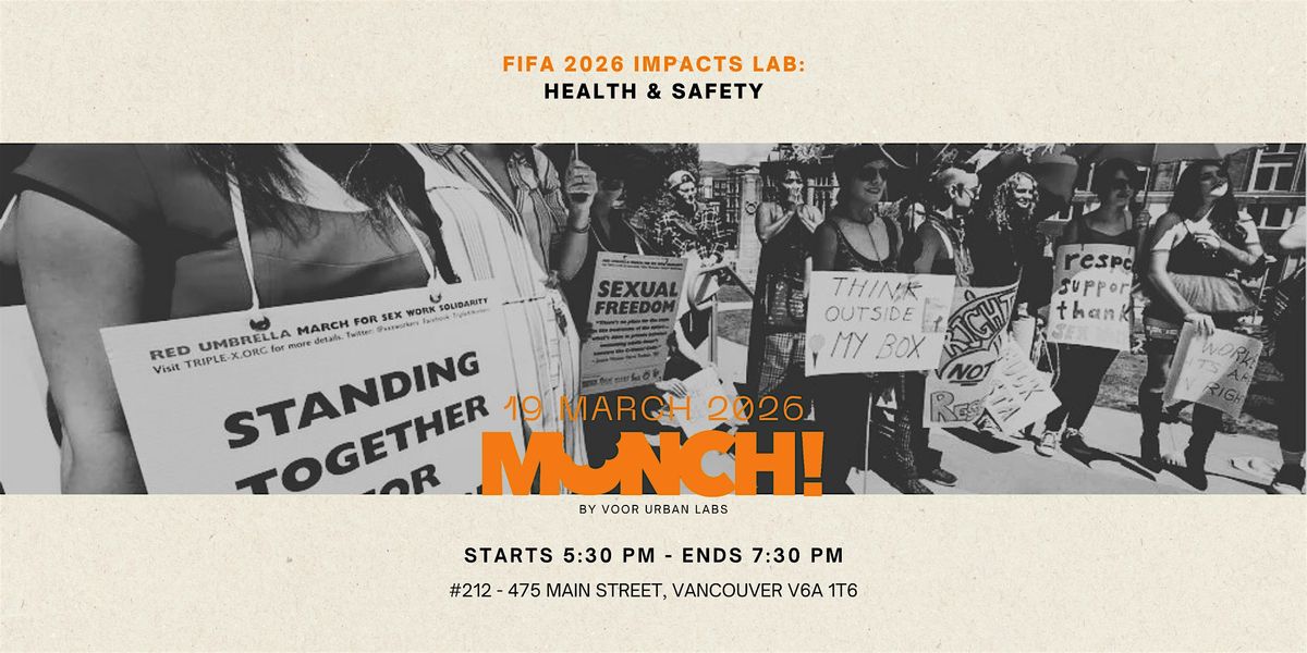 Voor Urban Labs invites you to a new season of Munch focused on improving the City of Vancouver’s Sustainability and Human Rights Strategy for the 2026 FIFA World Cup. Let’s hear from subject experts and participate in the discussion as we collaborate to assess how important issues in Vancouver are included or excluded from the City’s planning for the World Cup. These sessions serve as a collaborative laboratory where we move beyond mega event promises to establish the Community Playbook—a set of policy standards and accountability metrics designed to deliver benefits and accountability for the $700M municipal investment.