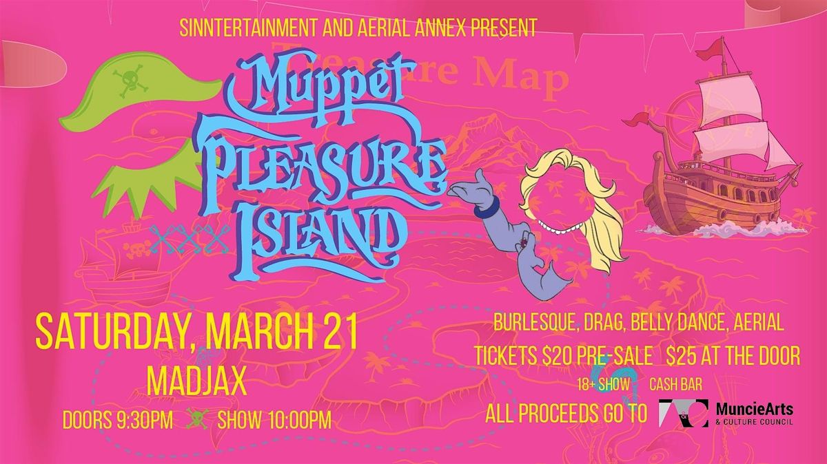 Sinntertainment and Aerial Annex present Muppet Pleasure Island! This show will be a burlesque, drag, and aerial theatrical event like you've never experienced. Get your ticket today to enjoy your favorite muppets in a whole new way! All proceeds will benefit Muncie Arts & Culture Council, a local organization that champions art and artists in our community.