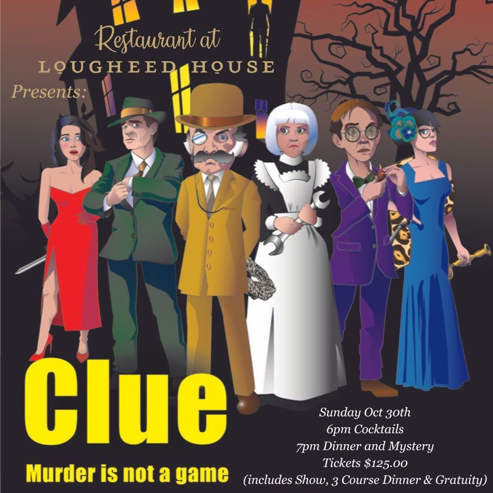 What better setting to get into the Halloween spirit then Murder Mystery and dinner in a hauntingly beautiful Victorian Mansion. Join us for a 3 Course Dinner andCLUE: MURDER IS NOT A GAME