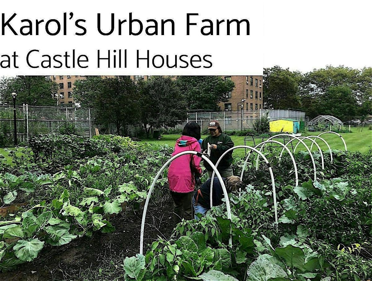 Karol’s Urban Farm is a 1.3-acre community garden located within the Castle Hill NYCHA campus, with a farm stand that serves local residents. The farm is grounded in principles of food sovereignty, environmental justice, and collective care, and aims to expand access to specialty edible mushrooms in the South Bronx.