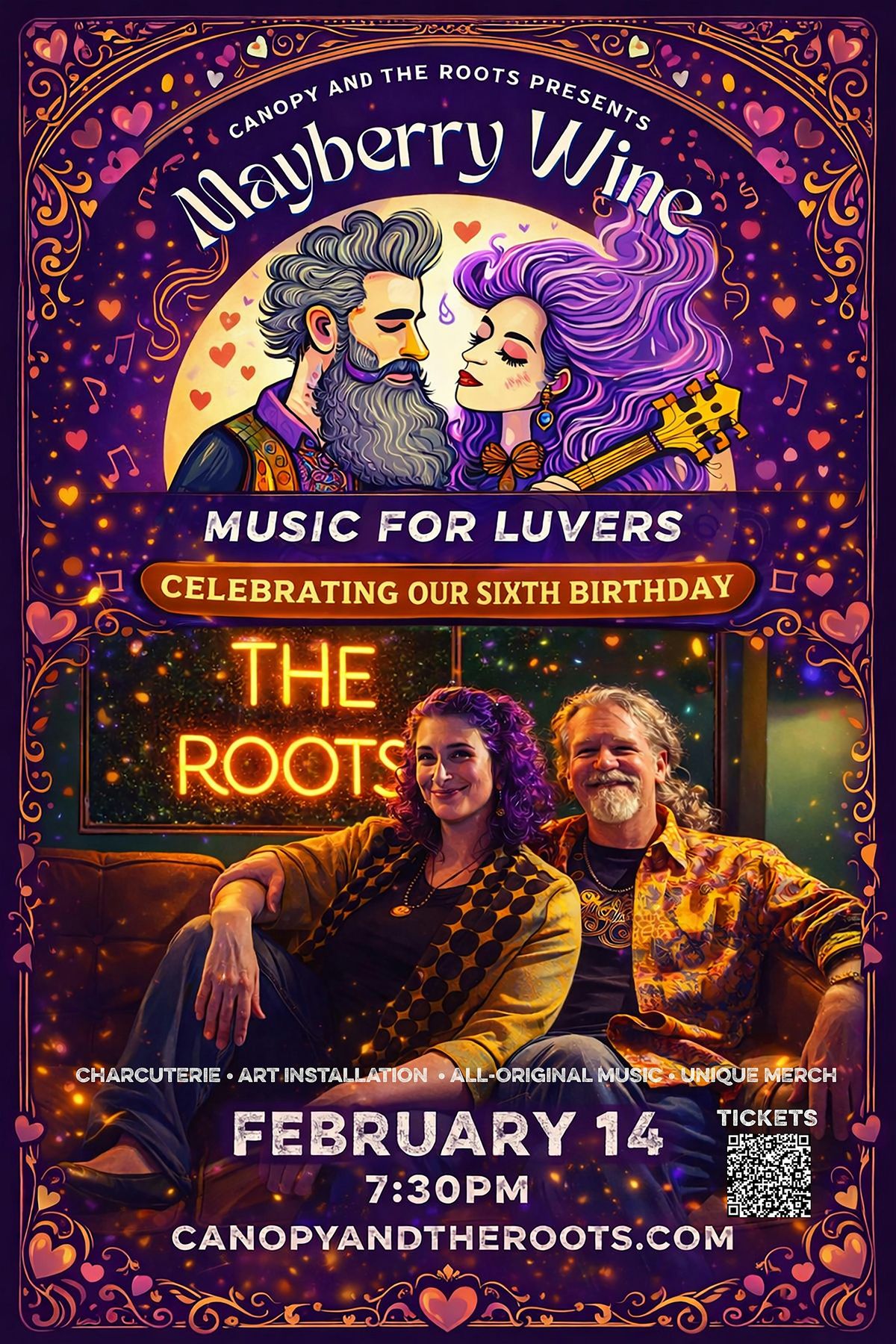 Love is in the air, and Mayberry Wine is turning up the volume! This Valentine's Day, join us for "Music for Luvers" at Canopy + the Roots – a one-of-a-kind celebration of love in all its beautiful forms. After all, love is about connection and community, not just coupling up.