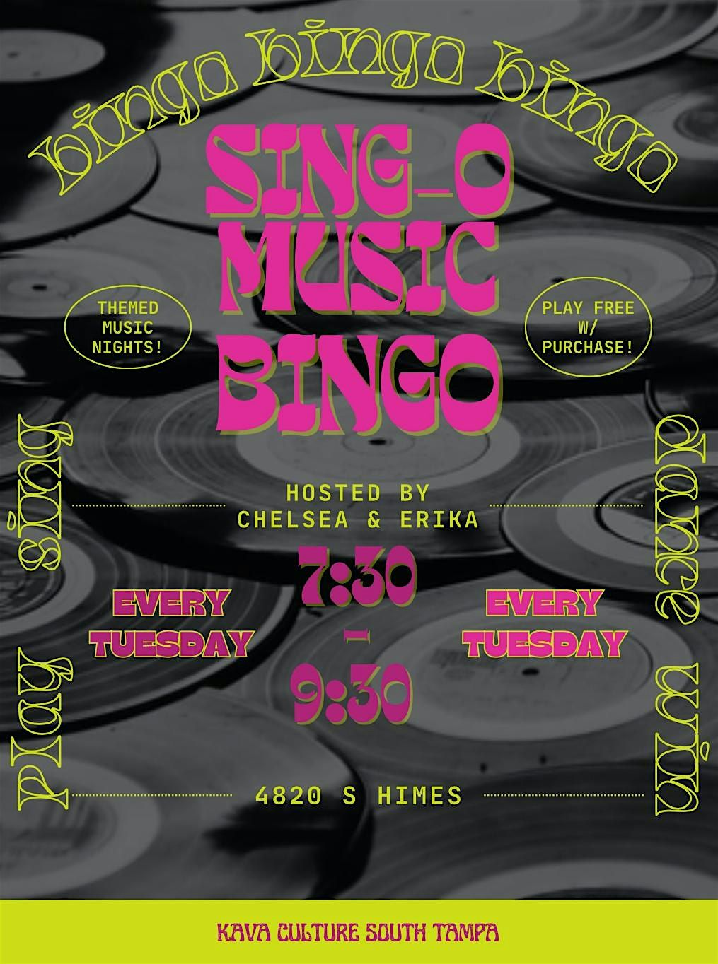 Welcome to music bingo hosted by Chelsea and Gabby! Join us every Tuesday at 7:30pm for different themes and genres.