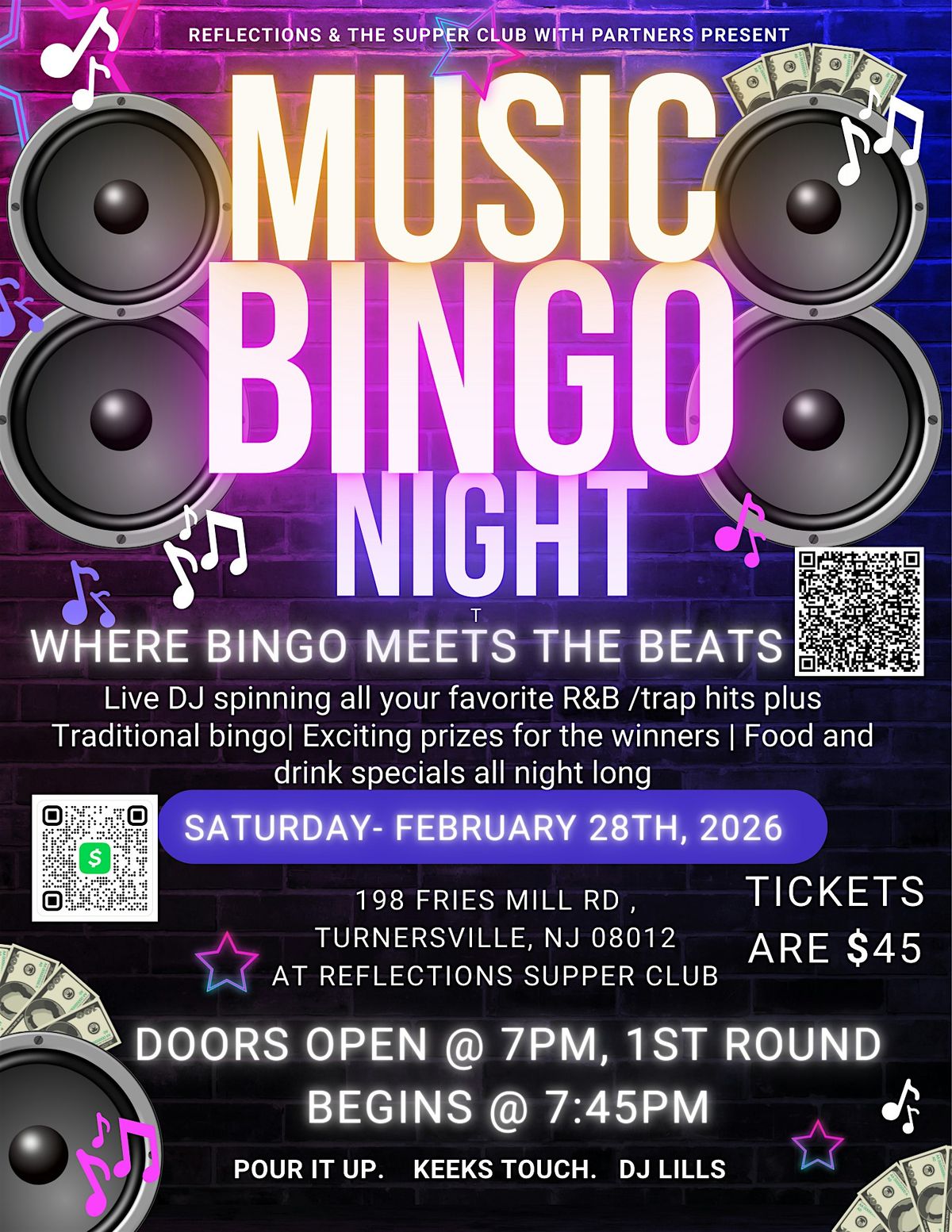 Get ready for a super fun in-person night of Music Bingo! Listen to your favorite tunes, mark your cards, and shout out Bingo! when you win. Whether you're a music lover or just looking for a cool way to hang out, this night’s for you. Bring your friends, make new ones, and let's enjoy some good vibes together. Don’t miss out on the beats and laughs!