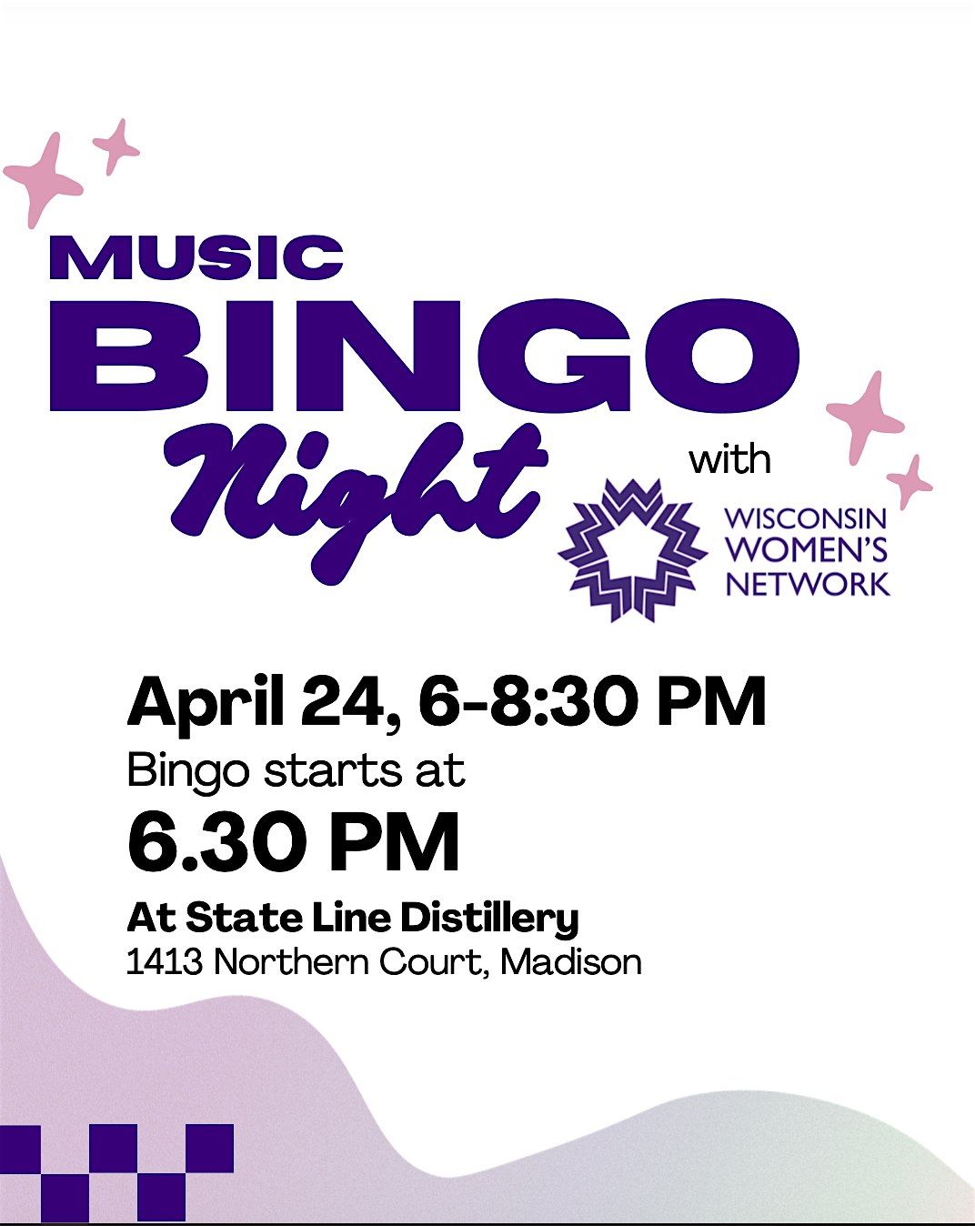 Join us Friday, April 24, at State Line Distillery for a fun-filled evening benefiting Wisconsin Women's Network. Grab your Bingo cards for $5 each, sip on a specialty WWN cocktail, and play for some amazing prizes—including a grand prize from State Line Distillery! ✨