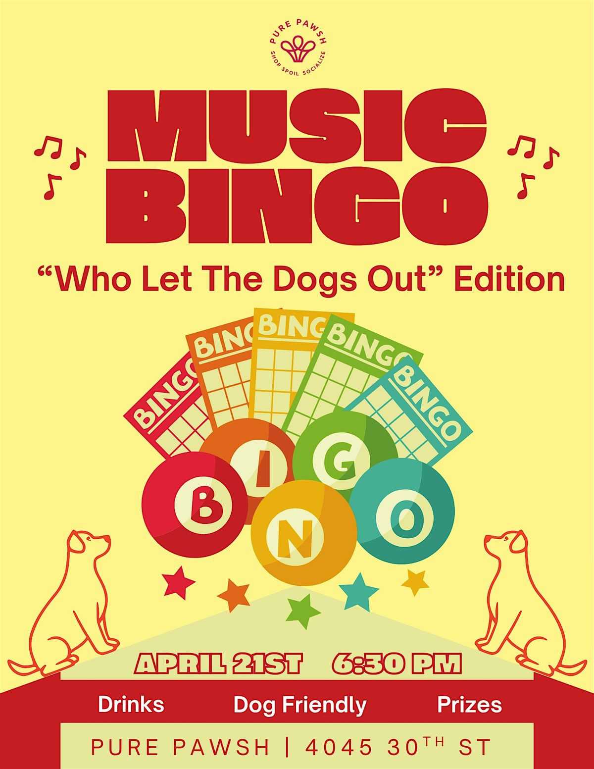 Join us at Pure Pawsh for Music Bingo: Who Let the Dogs Out Edition on April 21st at 6:30PM! Think your playlist knowledge is top dog? š¶š¤