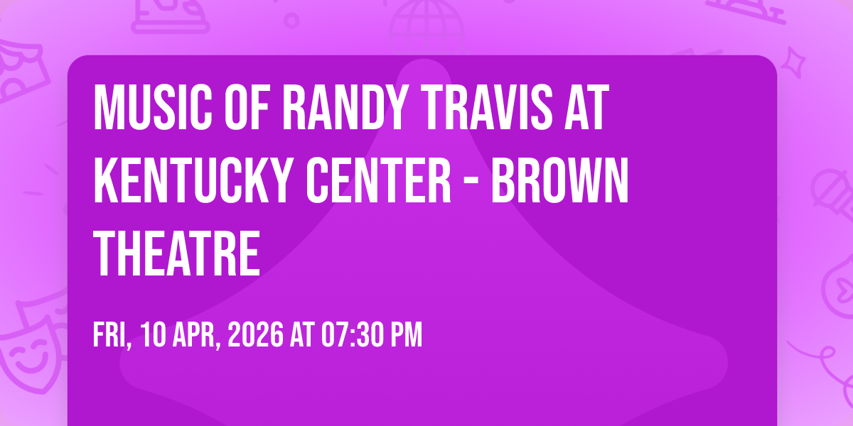 π Welcome to Music of Randy Travis at Kentucky Center - Brown Theatre, where the impossible becomes possible and dreams take flight! ποΈ Join us at Kentucky Center - Brown Theatre in the heart of Louisville, KY for an event that will redefine your expectations. π On April 10th, 2026 at 07:30 PM, witness the transformation of space and time into something truly magical. β¨ It's a curated experience combining the best of innovation, entertainment, and community spirit, creating moments that will be remembered for years to come. Whether you're a first-time visitor or a seasoned enthusiast, prepare to be amazed. π Book now to ensure your place in this unforgettable experience!