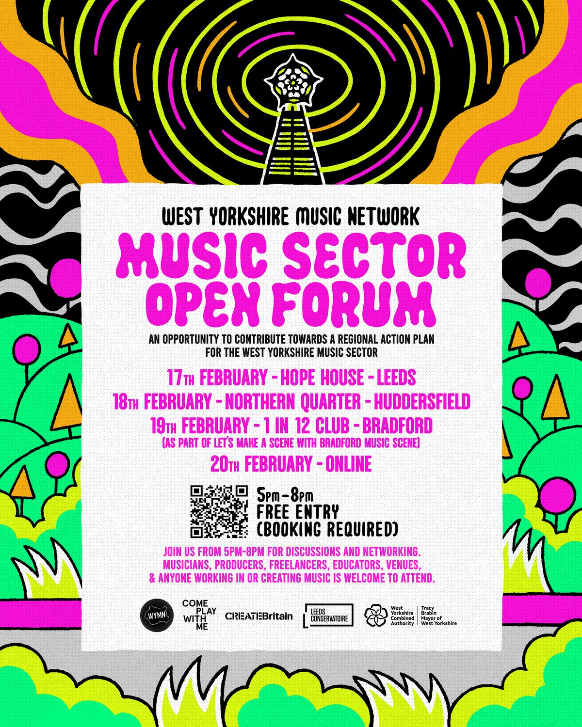 Join us at Hope House (Mabgate) from 5pm-8pm on 17th February for discussions, networking, and the opportunity to contribute towards a regional action plan for the West Yorkshire music sector.