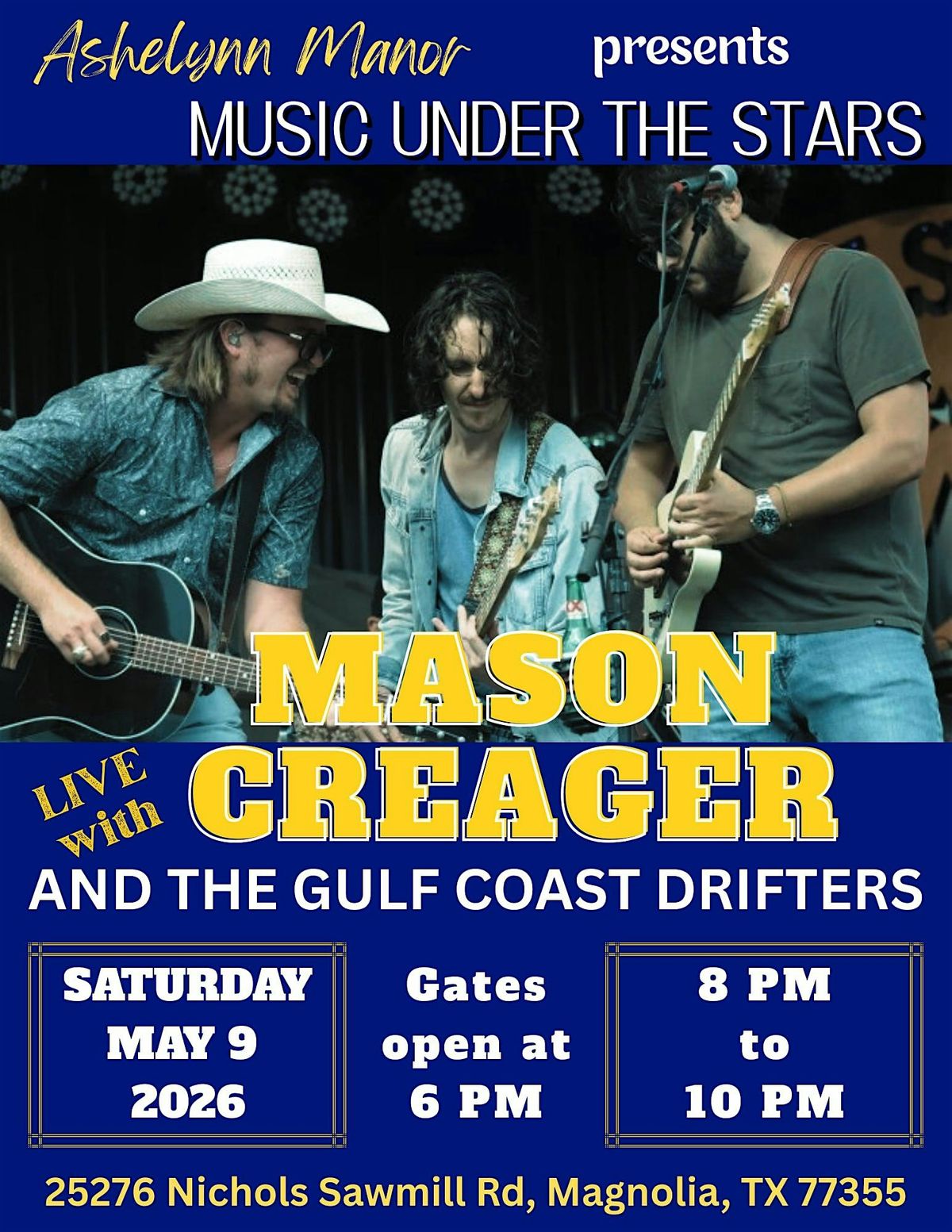 Music under the stars by Ashelynn Manor - Listen to your fav music live - with Mason Creager. Drinks + Food Truck available.