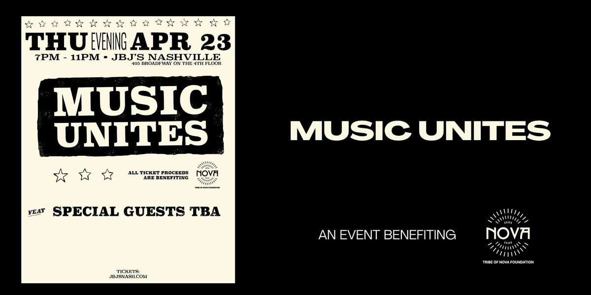 MUSIC UNITES IS A TICKETED EVENING BRINGING TOGETHER MUSICIANS AND SPEAKERS FOR A POWERFUL NIGHT OF COMMUNITY, CONVERSATION, AND LIVE PERFORMANCE — ALL IN SUPPORT OF THE TRIBE OF NOVA FOUNDATION.