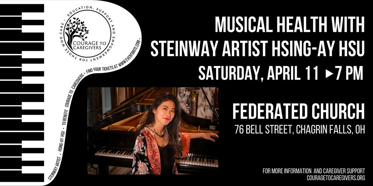 Join Steinway Artist Hsing-ay Hsu as she shares her caregiver journey, performs works by Chopin and Liszt, and leads interactive experiences based on her Conscious Listening™ approach - a whole brain method for engaging with music and life. This event is a fundraiser benefiting Courage to Caregivers, with the mission to empower and equip caregivers to navigate their journey.