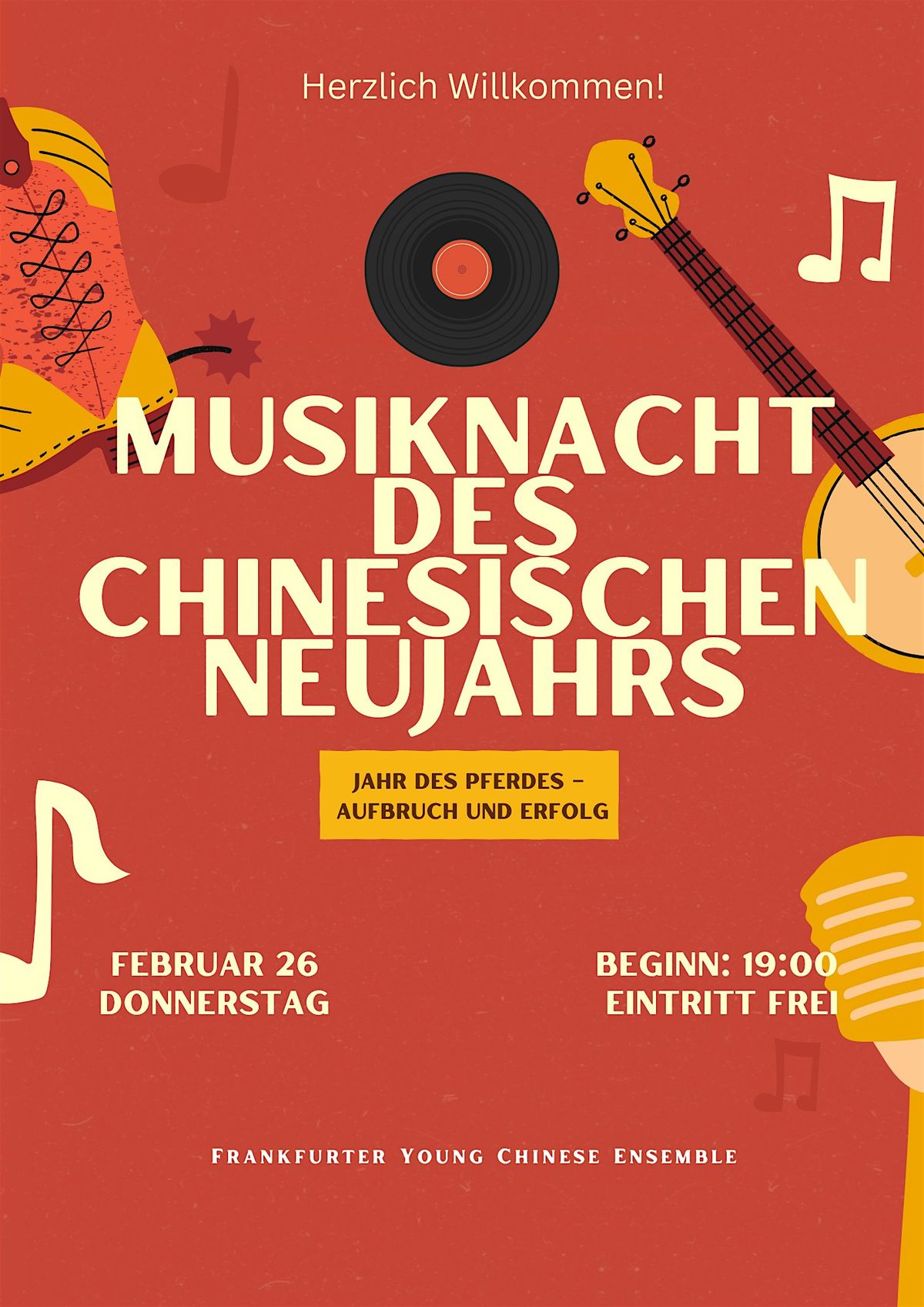 Hast du Lust auf einen besonderen musikalischen Abend zum chinesischen Neujahr? Dann komm vorbei und tauche mit uns in die Welt der traditionellen chinesischen Musik ein!