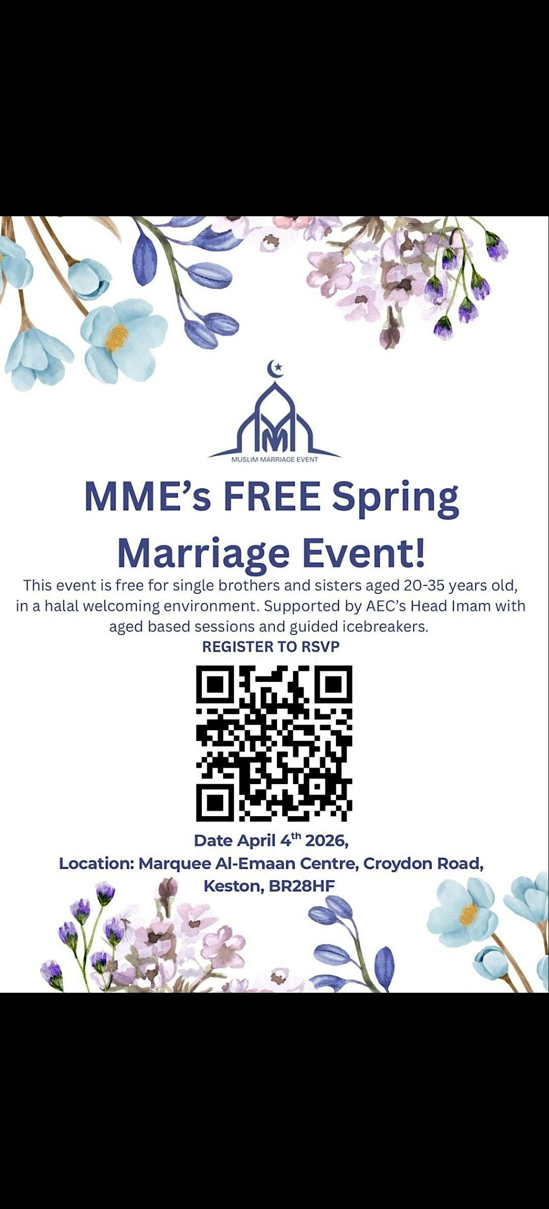 Looking for marriage in a respectful, structured, and supportive environment and aged 20–35?Join us at the MME’s *FREE* Spring Event