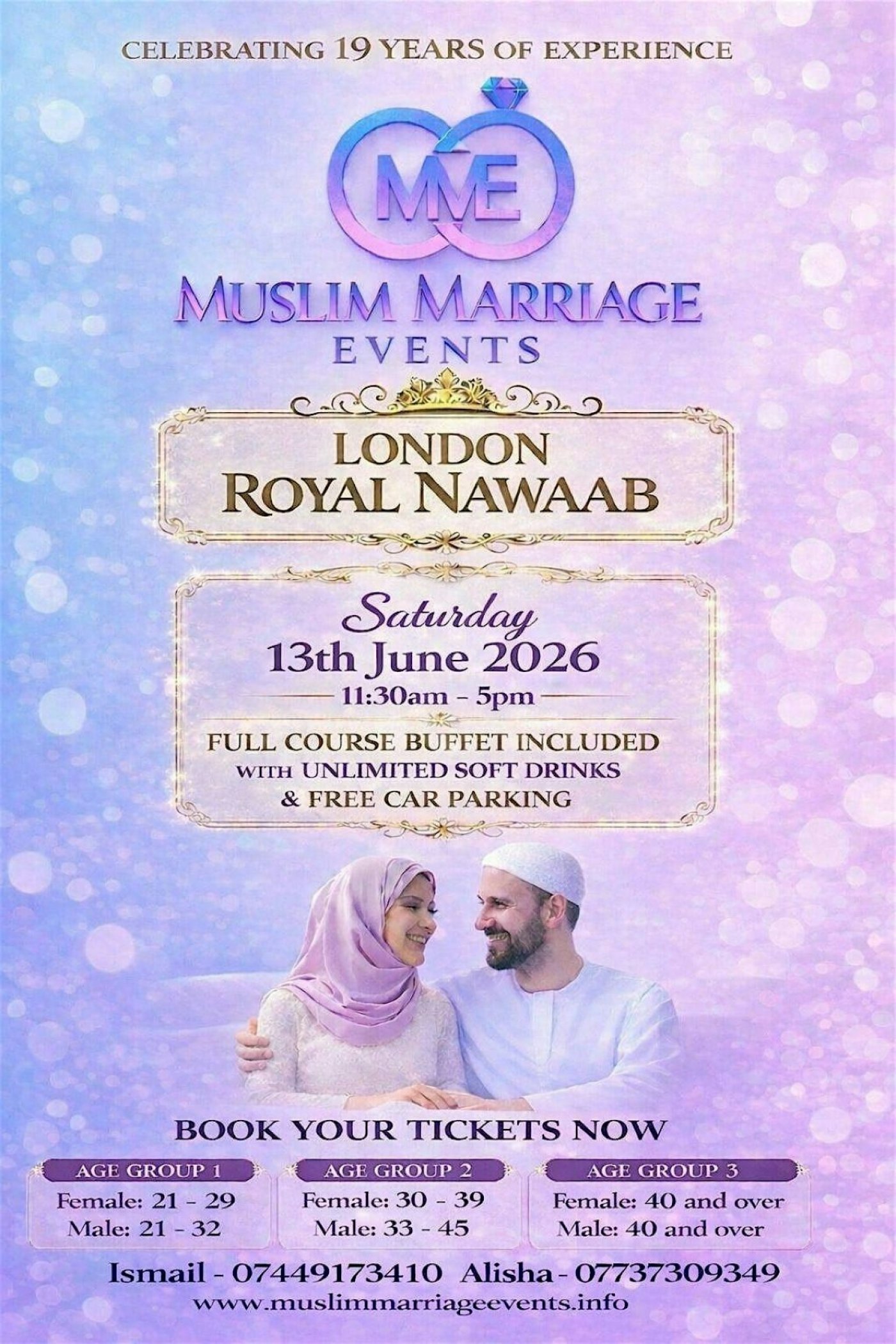 We are holding the next muslim marriage event on Saturday 13th June 2026 at Royal Nawaabs, Hoover Building 7, Western Avenue, Perivale, London, UB6 8DB.