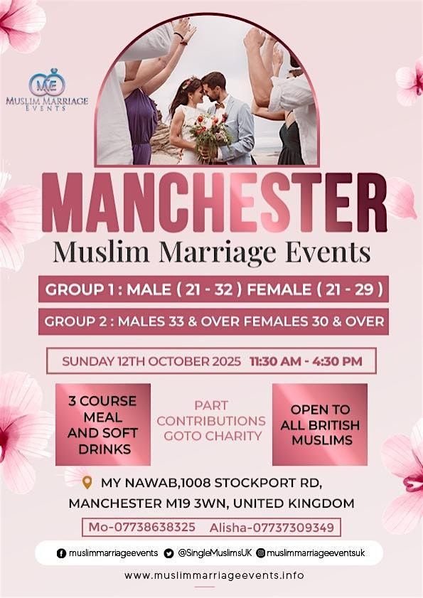 Join us for our upcoming Muslim marriage events on Sunday, 12th October 2025, at My Nawaab, located at 1008 Stockport Road, Manchester, M19 3WN.