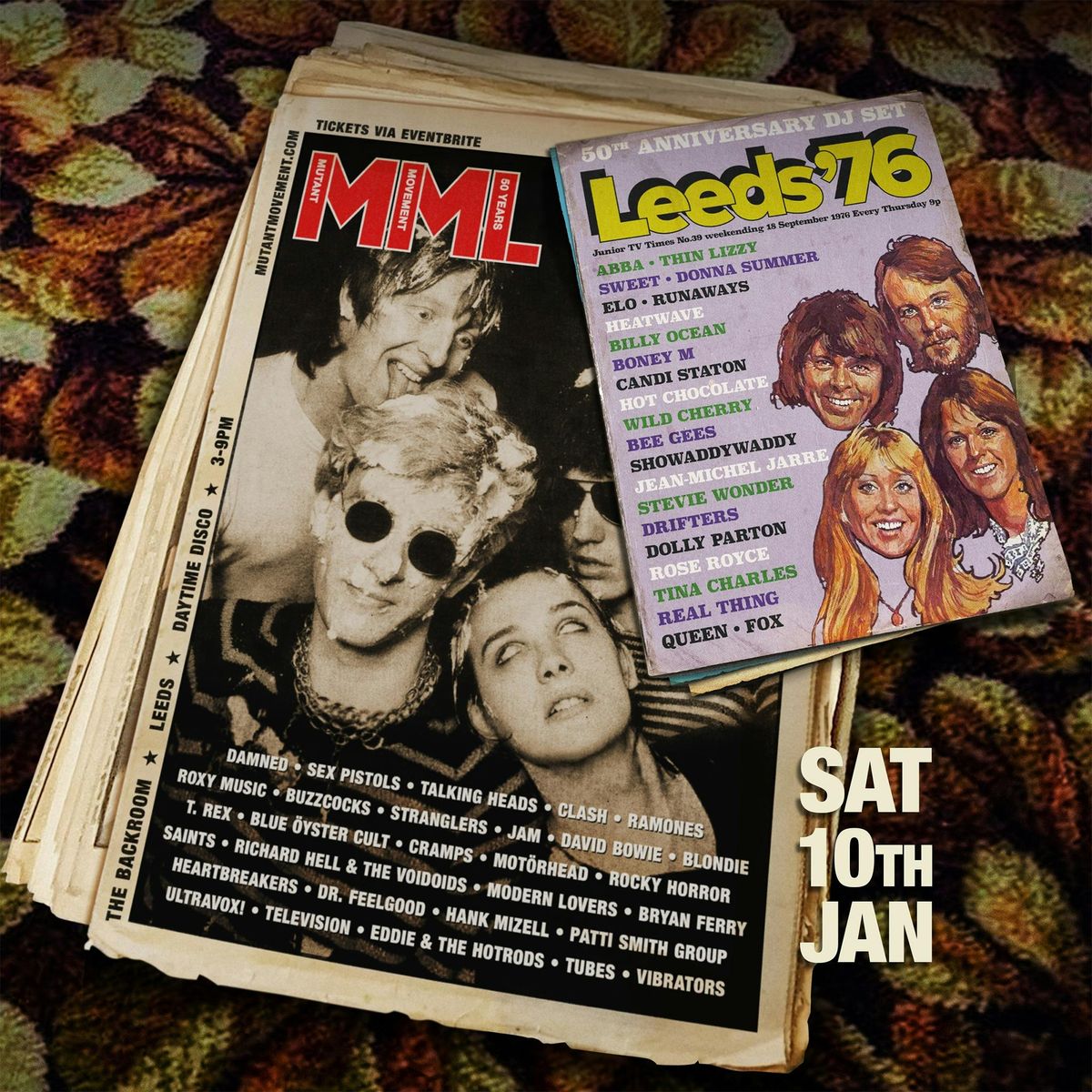 1976 was the year that Punk Rock grew beyond the confines of small pockets in major cities, out of the pubs & clubs and into the pop charts!For one day only, Mutant Movement will be combining the alternative side you're used to seeing with the Guilty Pleasures kept seperate up until now.It's 50 years since the pop music of the day, as great as it was, began to feel the squeeze from a new sound coming up from the underground and by the end of the year, taking its place in the Top 40.Although most of what was up and coming could only be heard at live gigs, not yet being released to buy on record so the music in this DJ set will include tracks played throughout 1976 across the globe, making a scene in cities such as New York, London & Brisbane to name a few.The results of two polls, mainstream and alternative came up with an interesting Top 200 as follows:-1 Sex Pistols - Anarchy In The UK2 Damned - New Rose3 Talking Heads - Psycho Killer4 Clash - White Riot5 Ramones - Blitzkrieg Bop6 Thin Lizzy - The Boys Are Back In Town7 Roxy Music - Love Is The Drug8 Buzzcocks - Orgasm Addict9 Stranglers - (Get a) Grip (on Yourself)10 Damned - Neat Neat Neat11 Jam - In The City12 Stranglers - Peaches13 Sweet - Fox On The Run14 David Bowie - Golden Years15 Abba - Dancing Queen16 Ramones - Judy Is A Punk17 Donna Summer - Love To Love You Baby18 Electric Light Orchestra - Livin' Thing19 Blondie - Rip Her To Shreads20 Stranglers - Hanging Around21 T. Rex - I Love To Boogie22 Runaways - Cherry Bomb23 Blue Öyster Cult - (Don't Fear) The Reaper24 Blondie - X Offender25 Clash - I'm So Bored With the U.S.A.26 Heatwave - Boogie Nights27 Billy Ocean - Love Really Hurts Without You28 Cramps - I Was A Teenage Werewolf29 David Bowie - Fame30 Clash - Janie Jones31 Thin Lizzy - Jailbreak32 Boney M - Daddy Cool33 Sex Pistols - No Feelings34 Candi Staton - Young Hearts Run Free35 Motörhead - Motörhead36 Hot Chocolate - You Sexy Thing37 Abba - Money Money Money38 Wild Cherry - Play That Funky Music39 Bee Gees - You Should Be Dancing40 Queen - Somebody To Love41 Rocky Horror Picture Show Cast - Sweet Transvestite42 Thin Lizzy - Don't Believe A Word43 Drifters - You're More Than A Number In My Little Red Book44 Dolly Parton - Jolene45 Ramones - Beat On The Brat46 Saints - (I'm) Stranded47 Richard Hell & The Voidoids - Blank Generation48 David Bowie - Station To Station49 Rocky Horror Picture Show Cast - The Time Warp50 Rose Royce - Car Wash51 Tina Charles - I Love To Love (But My Baby Loves To Dance)52 Sex Pistols - I Wanna Be Me53 Modern Lovers - Roadrunner54 Buzzcocks - Breakdown55 Cramps - Sunglasses After Dark56 Bryan Ferry - Let's Stick Together57 Heartbreakers - Chinese Rocks58 Real Thing - You To Me Are Everything59 Fox - S-S-S-Single Bed60 Dr. Feelgood - Roxette61 Hank Mizell - Jungle Rock62 Jean-Michel Jarre - Oxygène Part IV63 Patti Smith Group - Gloria64 Cramps - Domino65 David Bowie - TVC1566 Blondie - In The Flesh67 Stranglers - Down in the Sewer68 Roxy Music - Both Ends Burning69 Showaddywaddy - Under The Moon Of Love70 Stevie Wonder - Sir Duke71 Boney M - Sunny72 Sex Pistols - Seventeen73 Harold Melvin And The Bluenotes - Don't Leave Me This Way74 Talking Heads - Love-> Building on Fire75 Ultravox! - Dangerous Rhythm76 Television - Marquee Moon77 Boston - More Than A Feeling78 Buzzcocks - Boredom79 AC/DC - Dirty Deeds Done Dirt Cheap80 Lynyrd Skynyrd - Sweet Home Alabama81 Bob Marley & The Wailers - Stir It Up82 Walker Brothers - No Regrets83 Peter Frampton - Baby, I Love Your Way84 Tom Petty And The Heartbreakers - American Girl85 David Bowie - Young Americans86 Ramones - Let's Dance87 Queen - Tie Your Mother Down88 Elton John - Pinball Wizard89 Eddie And The Hotrods - Teenage Depression90 Bay City Rollers - I Only Wanna Be With You91 Tubes - White Punks On Dope92 Vibrators - We Vibrate93 Sailor - Girls Girls Girls94 Pussycat - Mississippi95 Sex Pistols - Submission96 Steve Harley And Cockney Rebel - Here Comes The Sun97 David Soul - Don't Give Up On Us98 Neil Diamond - Beautiful Noise99 Heartbreakers - Born To Lose100 Junior Murvin - Police & Thieves101 Blondie - Rifle Range102 Damned - Fan Club103 Wings - Silly Love Songs104 Sex Pistols - Satellite105 Sparks - Confusion106 Eagles - Hotel California107 Diana Ross - Love Hangover108 Stevie Wonder - I Wish109 Tavares - Heaven Must Be Missing An Angel110 Slik - Forever And Ever111 Siouxsie and the Banshees - The Lord's Prayer112 Tina Charles - Dr Love113 Bellamy Brothers - Let Your Love Flow114 James Brown - Get Up Offa That Thing115 Electric Light Orchestra - Evil Woman116 Cramps - I See You On My TV Set117 10 CC - Things We Do For Love118 Abba - Mamma Mia119 Elton John And Kiki Dee - Don't Go Breaking My Heart120 Four Seasons - December '63 (Oh What A Night)121 Manfred Mann's Earth Band - Blinded By The Light122 Cramps - I Can't Hardly Stand It123 Pere Ubu - Final Solution124 Vangelis - Pulstar125 Sherbet - Howzat126 AC/DC - High Voltage127 Electric Light Orchestra - Rockaria!128 Tavares - Don't Take Away The Music129 Barry Biggs - Sideshow130 Bryan Ferry - Price Of Love131 Leo Sayer - You Make Me Feel Like Dancing132 O'Jays - I Love Music133 Melba Moore - This Is It134 Devo - Secret Agent Man135 Be Bop Deluxe - Ships In The Night136 Who - Squeeze Box137 Brotherhood Of Man - Save Your Kisses For Me138 Fleetwood Mac - Say You Love Me139 John Miles - Music140 Residents - Satisfaction141 Suicide - Rocket U.S.A.142 Be Bop Deluxe - Maid In Heaven143 Black Sabbath - Dirty Women144 Paul Simon - 50 Ways To Leave Your Lover145 Chris Spedding - Motor Bikin'146 Elvis Presley - Suspicion147 Isley Brothers - Harvest For The World148 Kiss - Detroit Rock City149 Stevie Wonder - As (Always)150 Barry White - You See The Trouble With Me151 Stylistics - Can't Help Falling In Love152 Chris Spedding And The Vibrators - Pogo Dancing153 Wayne County And The Back Street Boys - Cream In My Jeans154 Barry White - Let The Music Play155 Cliff Richard - Devil Woman156 Wurzels - Comb