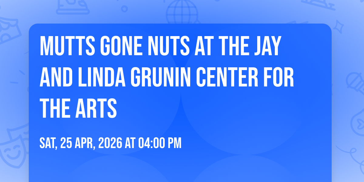 β¨ Enter a world of endless possibilities at Mutts Gone Nuts at The Jay and Linda Grunin Center for the Arts, where every moment tells a story! ποΈ The stunning The Jay and Linda Grunin Center for the Arts in vibrant Toms River, NJ transforms into a realm of wonder on April 25th, 2026 at 04:00 PM. π They have crafted an experience that goes beyond the ordinary, combining elements of surprise, delight, and pure entertainment. Every detail has been thoughtfully considered to ensure your journey with us is nothing short of extraordinary. π― Join fellow adventure seekers and memory makers in this celebration of imagination and innovation. π Reserve your spot today and be part of something truly special!
