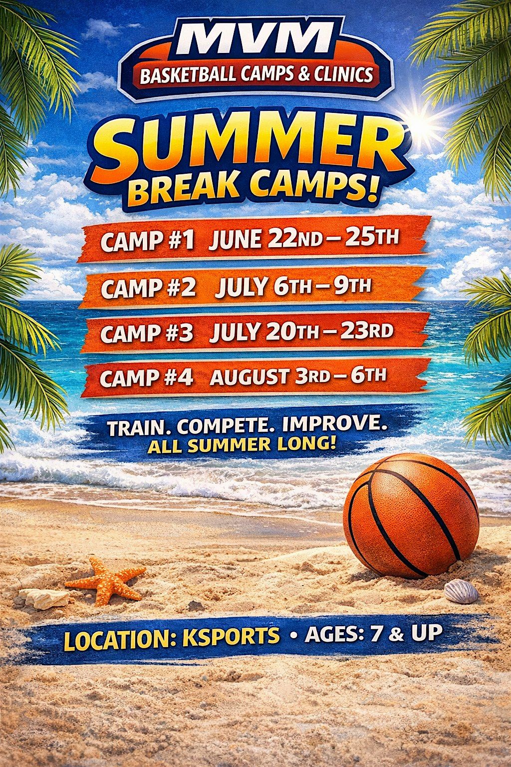 Looking for a fun way to ramp up your basketball skills this summer? Join us at the MVM - Summer Break Basketball Camps! This is an in-person event where you can learn from the best basketball trainers in the area, learn new moves, and compete in daily competitions and games with your friends. Whether you're a beginner or a pro, these camps are designed to boost your confidence and have a blast on the court. Don’t miss out on this awesome summer experience!
