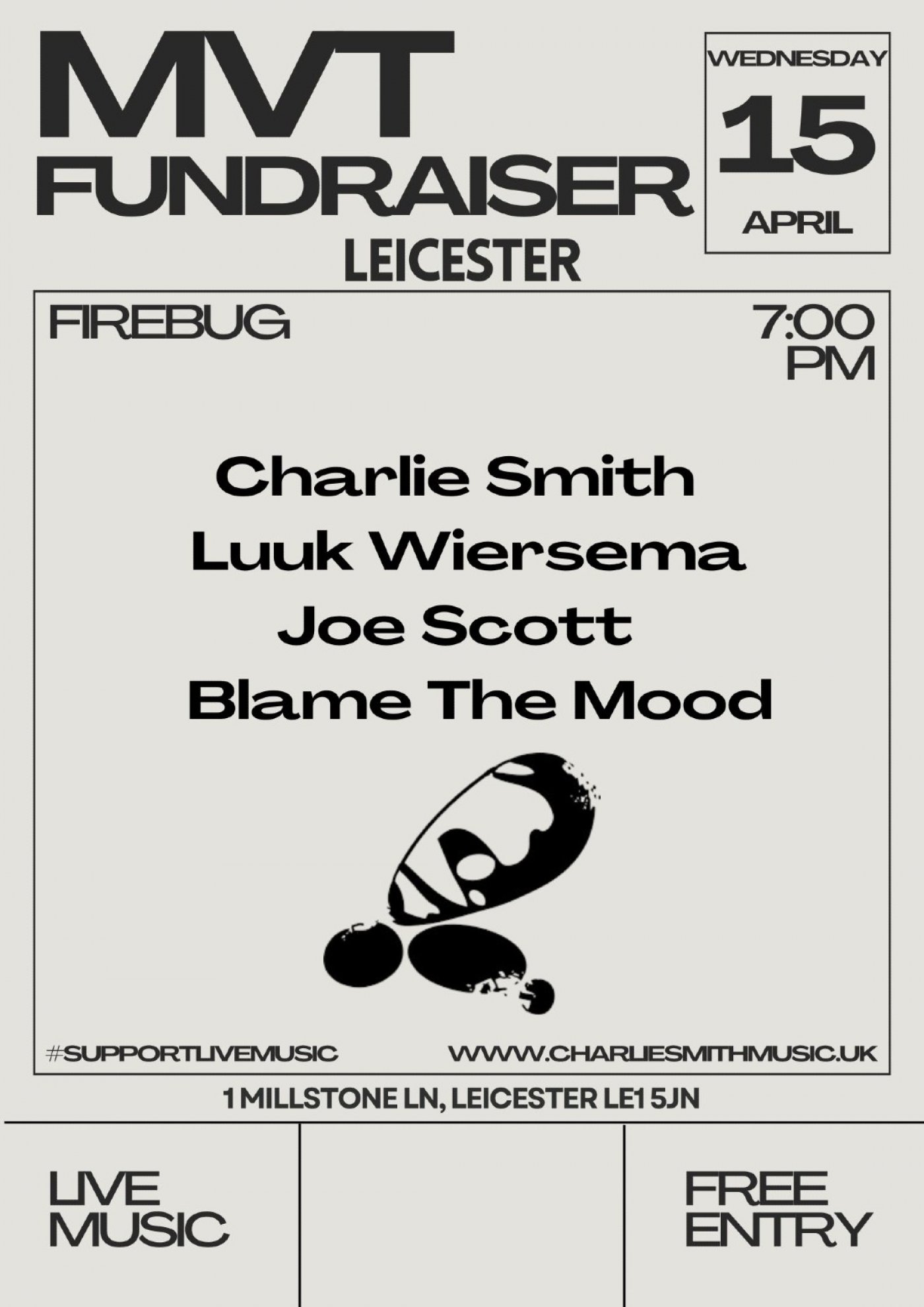 Join us at the Firebug Leicester for a grassroots acoustic special raising money for the MVT.