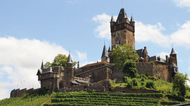 Join us for a tour of the Grand Cochem Castle. Cochem is a small medieval town of Roman origin dominated by a famous castle and rich in history and traditions. But this lovely town is not only a picturesque destination perfect for a day trip: its many wineries and scenic surroundings make it a great base to explore the Moselle Valley and enjoy a vacation in nature.Even if the Rhine River Valley is internationally famous as one of the most renowned German tourist destinations, the Moselle Valley is equally rich in hidden gems and picturesque locations suitable for a romantic getaway or an active family holiday. Cochem offers many trekking and sightseeing opportunities. After a guided tour of the famous castle, transfer over to the point where the Moselle river joins Rhine river.
