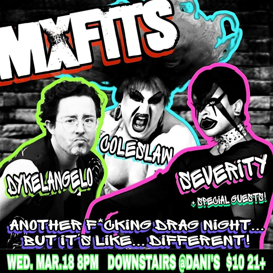 The queerdos are bringing their drag shenanigans back to Dani's Boston. Severity, Coleslaw, & Dykleangelo are the MXFITS. Come laugh w us!