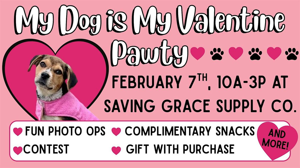 You’re invited to Saving Grace Supply Co.’s “My Dog is My Valentine” Pawty on February 7th, 10am to 3pm at Saving Grace Supply Co.!