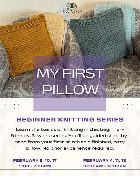 Learn the essentials of knitting in this cozy, beginner-friendly 3-week series. We will explore how to cast on, knit, purl, and combine stitch to complete a cozy pillow from start to finish. Each session builds on the last, helping you grow at a comfortable pace with plenty of support.