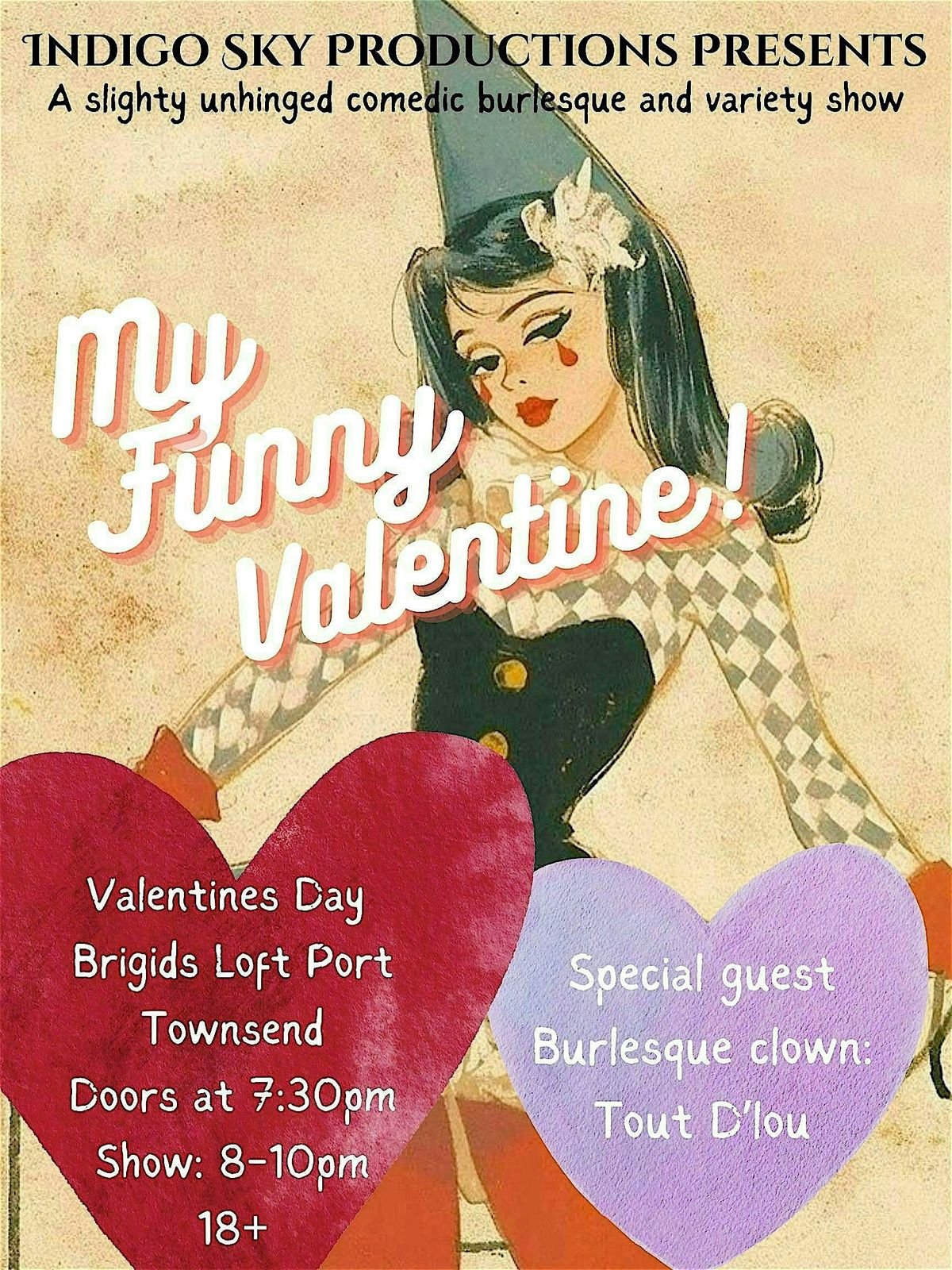 Indigo Sky Productions invites audiences to fall head-over-heels for My Funny Valentine, a dazzling night of comedic burlesque and variety that blends seduction, satire, and spectacle. This one-night-only event promises laughter, glamour, and delight, featuring The Sky Dancers and headlined by the unforgettable multi award winning burlesque clown Tout D’Lou.