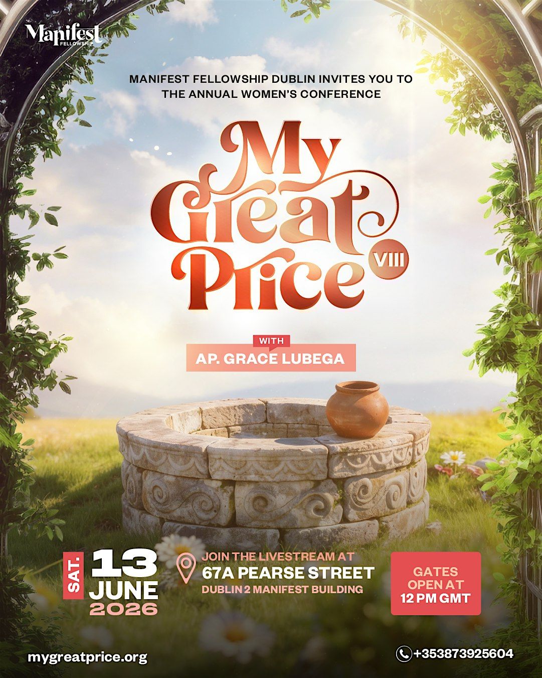 Join us on Saturday, 13th June 2026 for the greatest gathering of women in the world, My Great Price, 2026, 67A Pearse Street, Dublin 2, D02 WD62.
