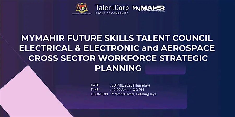 The MyMahir FSTC E&E & Aerospace Cross-Sector Workforce Strategic Planning Workshop brings together council members and industry stakeholders to prioritise critical workforce needs across the Electrical & Electronic (E&E) and Aerospace sectors. The session focuses on identifying cross-sector roles suitable for shared investment, validating urgent hiring demands, and aligning future skills development to optimise funding impact. This strategic workshop serves as a collaborative platform to align industry demand with targeted workforce interventions under MyMahir FSTC. Participants will validate priority job roles and skills gap, and recommend training pathways and solution providers to support cross-sector workforce development across E&E and Aerospace sector.